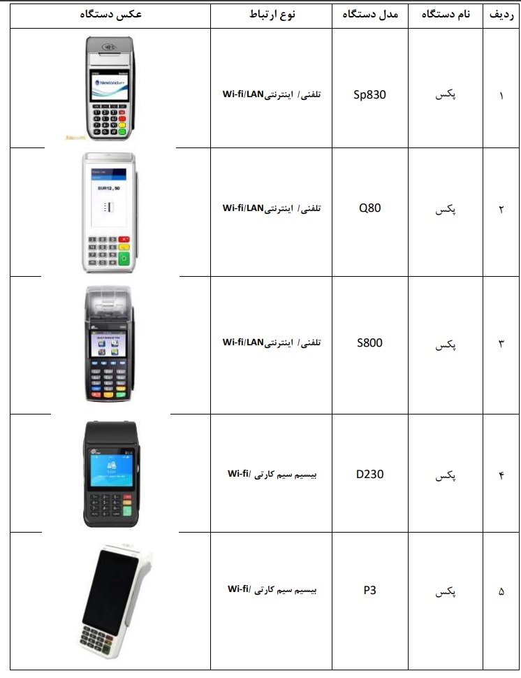 لیست کارت خوان های موجود